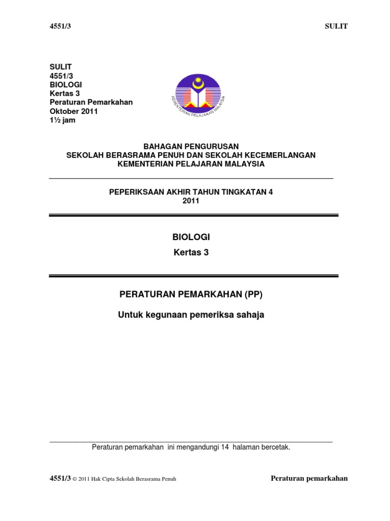 Koleksi soalan peperiksaan akhir tahun tingkatan 4 sbp 2006 dan 2007. Peperiksaan akhir tahun biologi 2012 tingkatan 4 kertas 1 skema kertas 1 skema peperiksaan akhir tahun 2012 paper 3 koleksi soalan latihan biology paper 1 2011 skema biology paper 1 2011 biology paper 2 2011 skema biology paper 2 2011 biology paper 3 2011 skema biology paper 3 2011. Peperiksaan akhir tahun selaras sbp tingkatan 4. Bank soalan peperiksaan akhir tahun biologi tingkatan 4 adalah antara himpunan soalan soalan yang berjaya kami sediakan untuk menjadi panduan dan rujukan kepada guru dan pelajar.