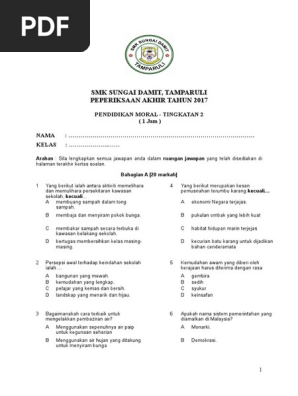 Soalan Peperiksaan Pertengahan Tahun 2018 Kssm Tingkatan 2 Pendidikan Moral