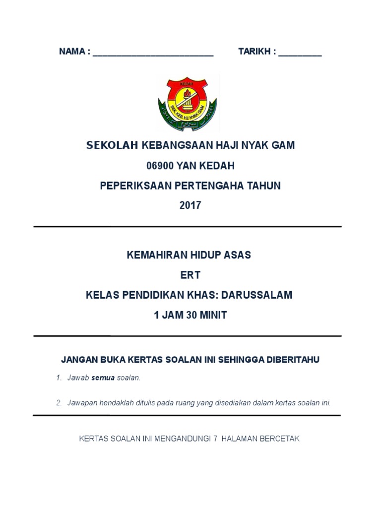 Kemahiran Hidup Pendidikan Khas Bermasalah Pembelajaran Soalan Latihan Perkebunan