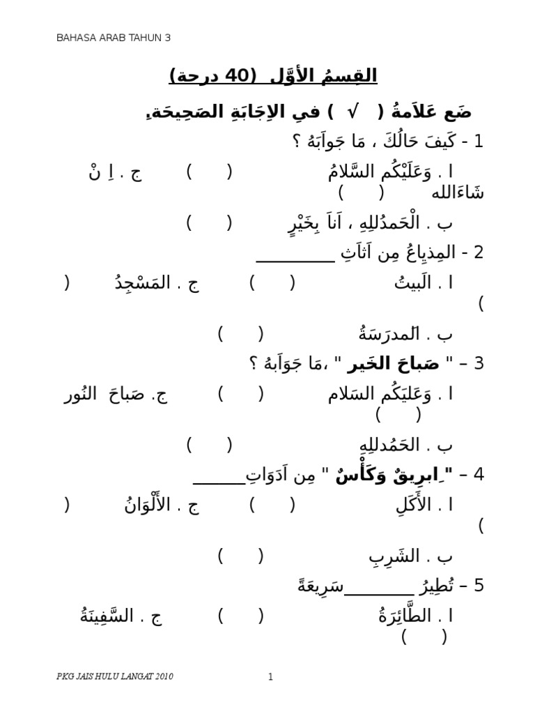 Soalan Bahasa Arab Tahun 3 Jais