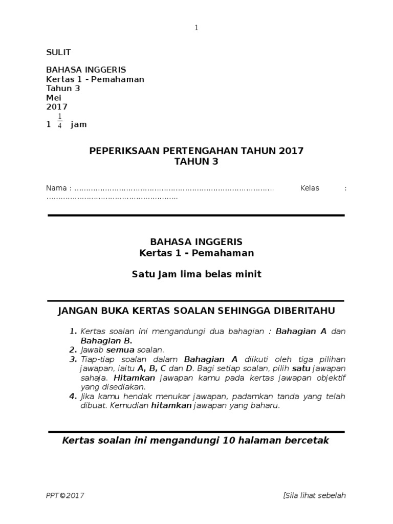Soalan Kertas Pemahaman Bahasa Inggeris Bi Tahun 2 English Year 2 Peperiksaan Pertengahan Tahun Kssr Kertas 1 Paper 1 Cognitive Science Research Paper Computer Science