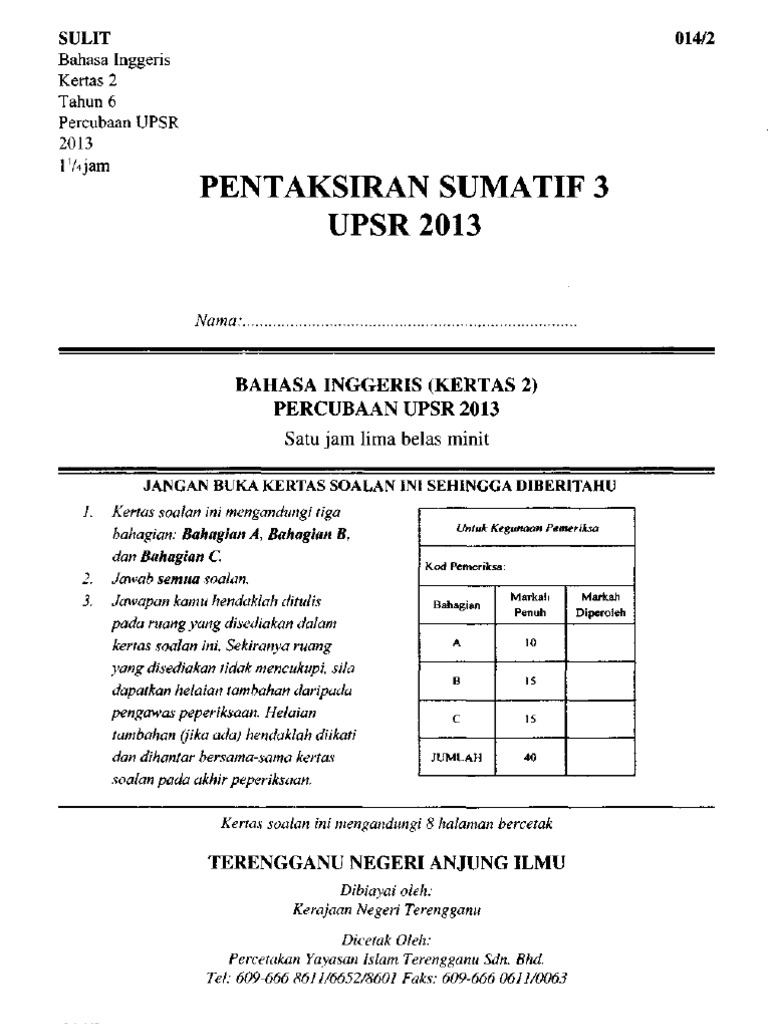 Contoh Soalan Bahasa Inggeris Penulisan Tahun 6 Kecemasan L