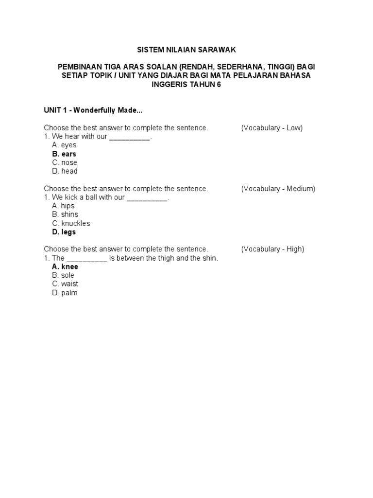 Soalan Grammar Bahasa Inggeris Tahun 6 Terengganu N