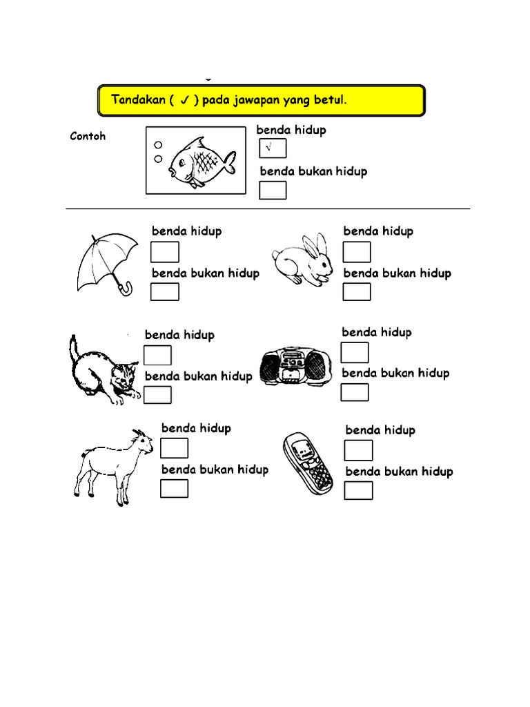 Latihan Benda Hidup Dan Benda Bukan Hidup